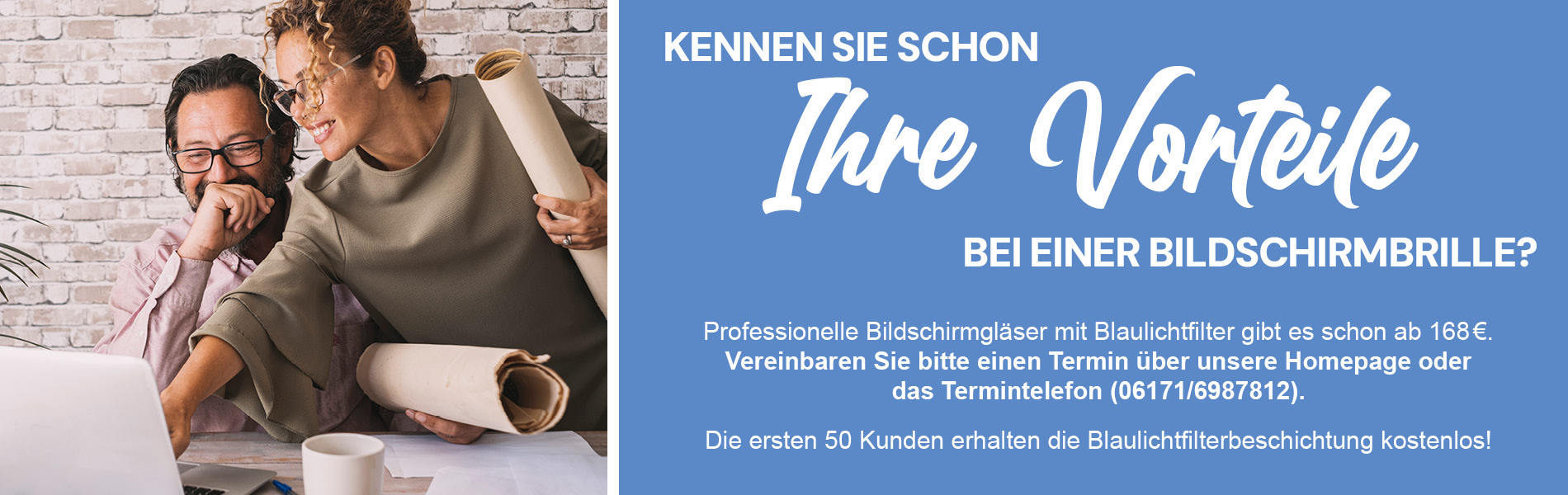 Willkommen bei Ihrem kompetenten Team für Oberursel (Taunus). Ob die neue modische Brille, der Umgang mit Ihren Kontaktlinsen oder Fragen rund um Ihre Sehstärke - wir beraten Sie jederzeit persönlich und umfassend, denn bei uns hat Qualität noch Tradition. Dafür stehen wir mit erfahrenen Mitarbeitern und umfassenden Services, die über den reinen Verkauf von Brillen weit hinausgehen.